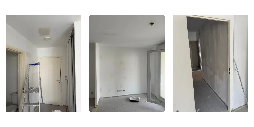 Intervention de Matière & Peinture pour la réfection d’un appartement avant relocation : débarras du mobilier, rénovation des peintures, remise aux normes et nettoyage général.